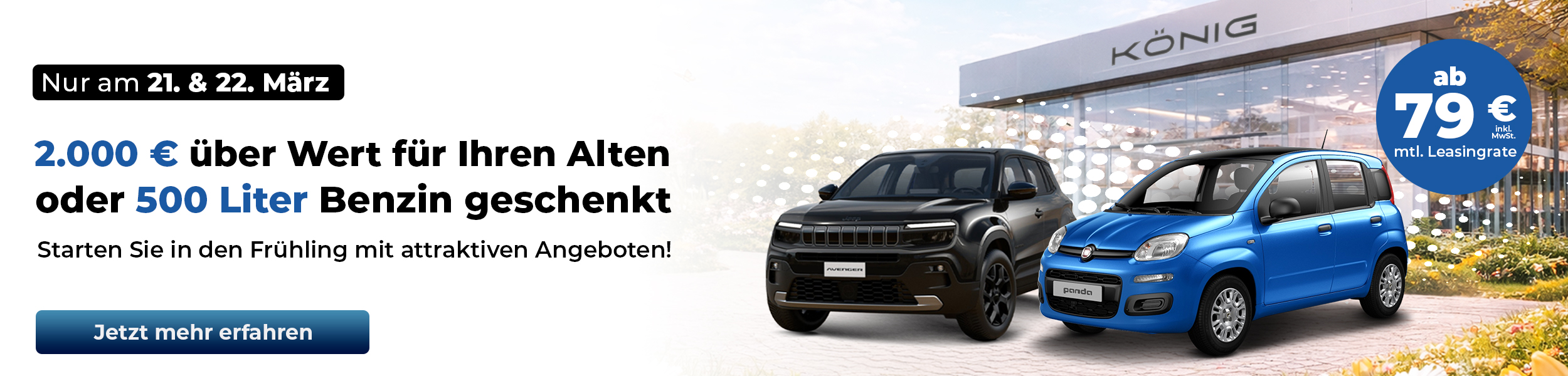 Profitieren Sie regelmäßig von attraktiven Top-Leasing-Deals, Sonderaktionen und regionalen Events, bei denen wir Ihnen selbstverständlich Getränke und Speisen kostenfrei zur Verfügung stellen. Entdecken Sie jetzt die große Markenvielfalt, sofort verfügbare Fahrzeuge und günstige Angebote bei Autohaus König – Ihrem Autohaus in Nord- und Ostdeutschland.