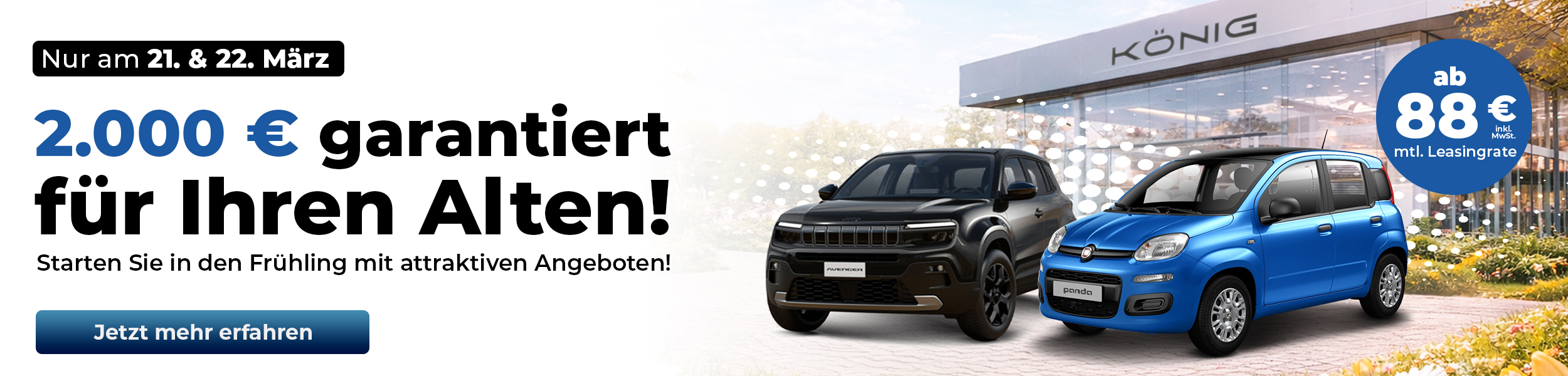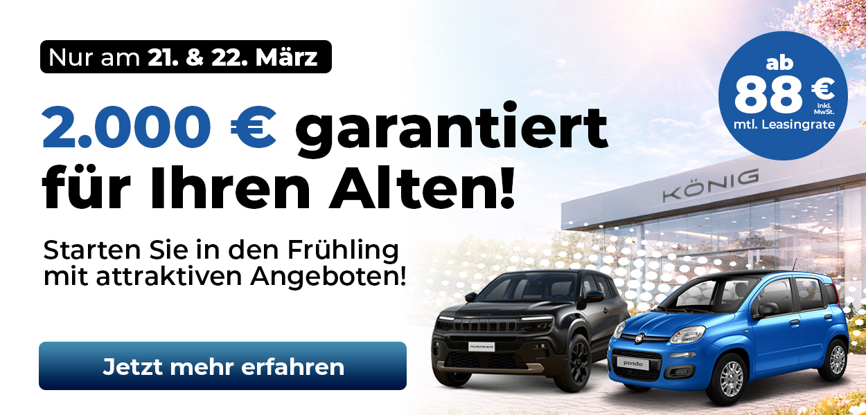 Profitieren Sie regelmäßig von attraktiven Top-Leasing-Deals, Sonderaktionen und regionalen Events, bei denen wir Ihnen selbstverständlich Getränke und Speisen kostenfrei zur Verfügung stellen. Entdecken Sie jetzt die große Markenvielfalt, sofort verfügbare Fahrzeuge und günstige Angebote bei Autohaus König – Ihrem Autohaus in Nord- und Ostdeutschland.